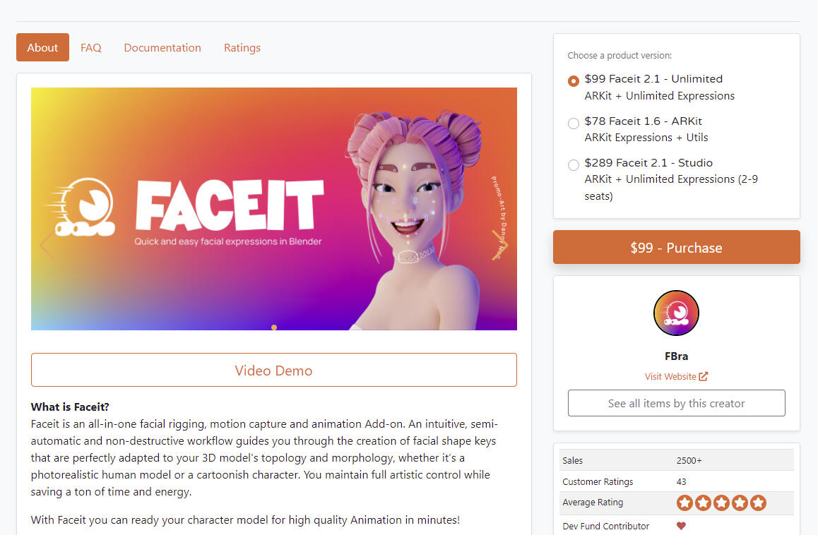 This tutorial will be using FaceIt, a plugin for blender that makes it easier to create all the shapekeys needed for Iphone Facial tracking. It is not required however. You can acheive the same effect by creating all 52 shapekeys yourself. Faceit creates a base from you to work from and allows you to edit them to your choosing.