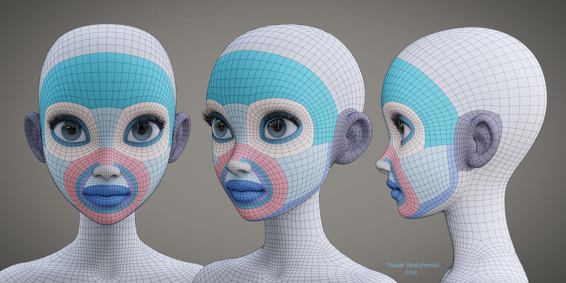 Above is an example of ideal face topology. Use this reference when creating your own model.